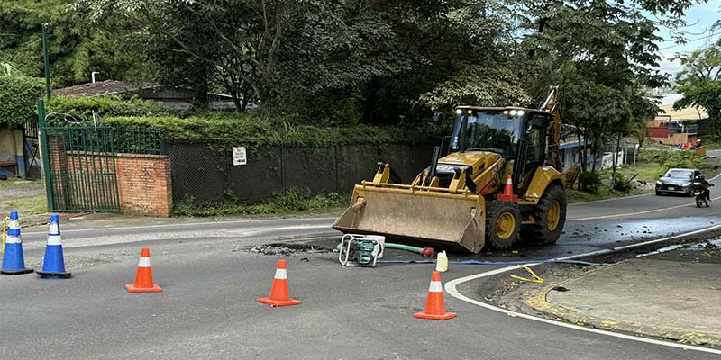Desde esta mañana personal de la Municipalidad de Escazú trabaja en una alcantarilla pluvial obstruída ubicada de la antigua delegación de la Fuerza Pública de Escazú 100 metros al sur.