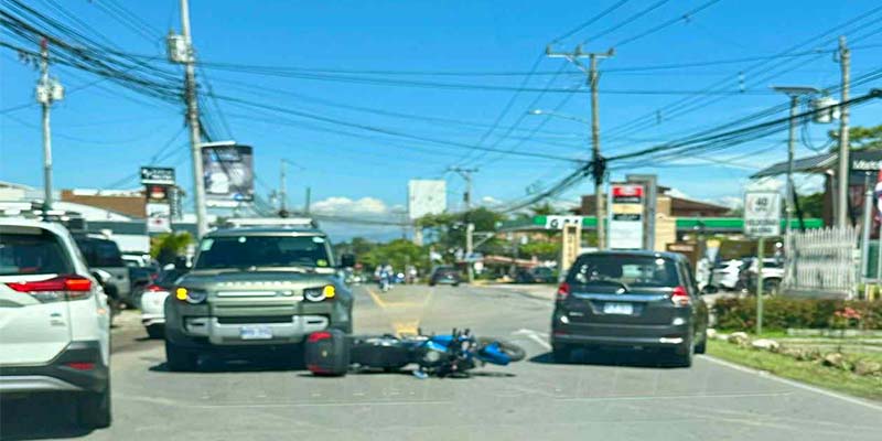 Pasadas las 9:30 pm se presentó una colisión entre dos vehículos y una motocicleta 50 metros al sur de la Gasolinera G24 en Guachipelín de Escazú.